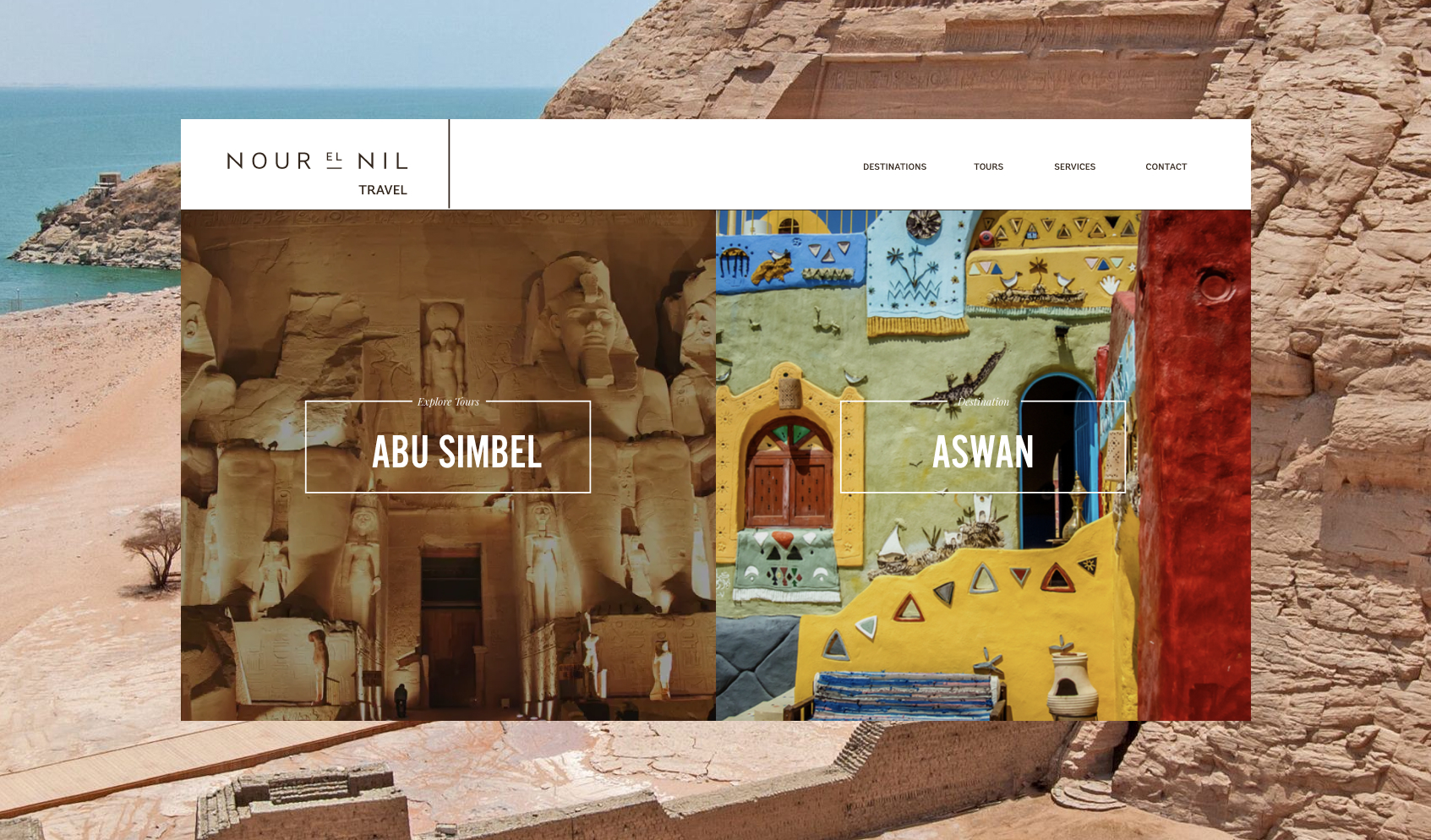 Nour el Nil Travel is a sub-brand within Nour el Nil - a curated and unique travel experience for those wanting to see parts unknown of Egypt. I created a distinct sub brand system that spoke to the orignial identity to separate the user experience. See the live site here.